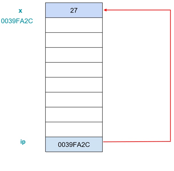 - Print the address of variable x. The value of the address was stored in the variable ip.