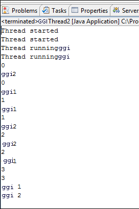 Hence, first, we get ggi1 then ggi2 then again ggi2 because the thread sleeps here for 1000 milliseconds and then next ggi1 and again ggi1, thread sleeps for 1000 milliseconds, so we get ggi2 and then ggi1.
