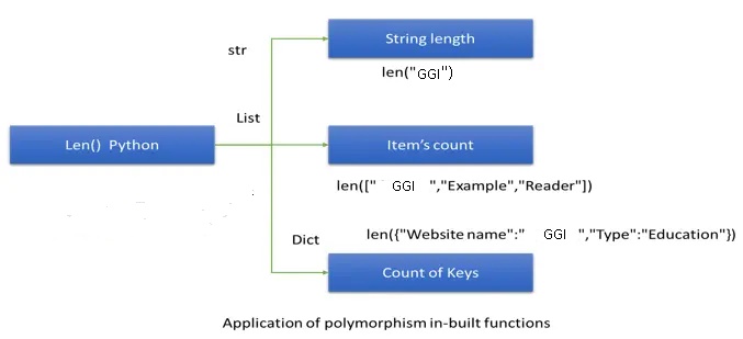 The following figure shows how Polymorphism can be applied in Python with relation to in-built functions: –