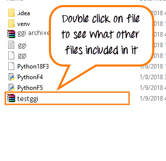 When you double click on file “testggi.zip”, it will open another window, and this will show the files included in it.