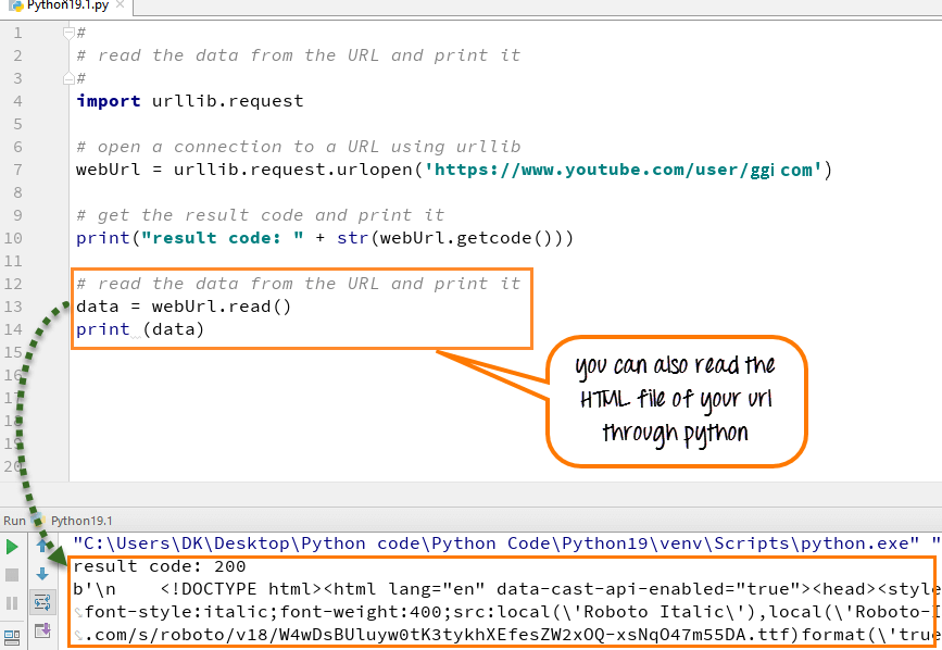 Before we run the code to connect to Internet data, we need to import statement for URL library module or “urllib”.